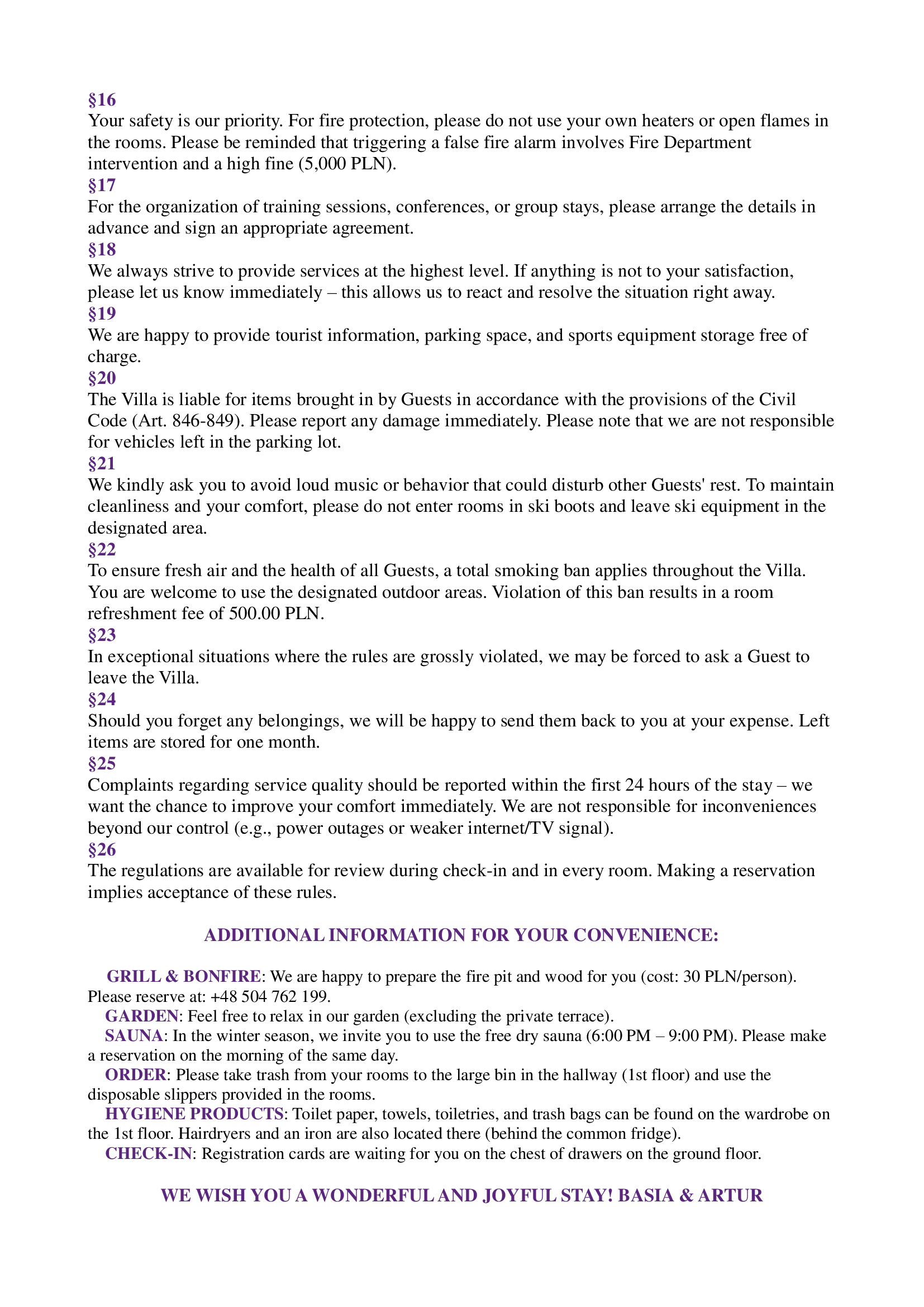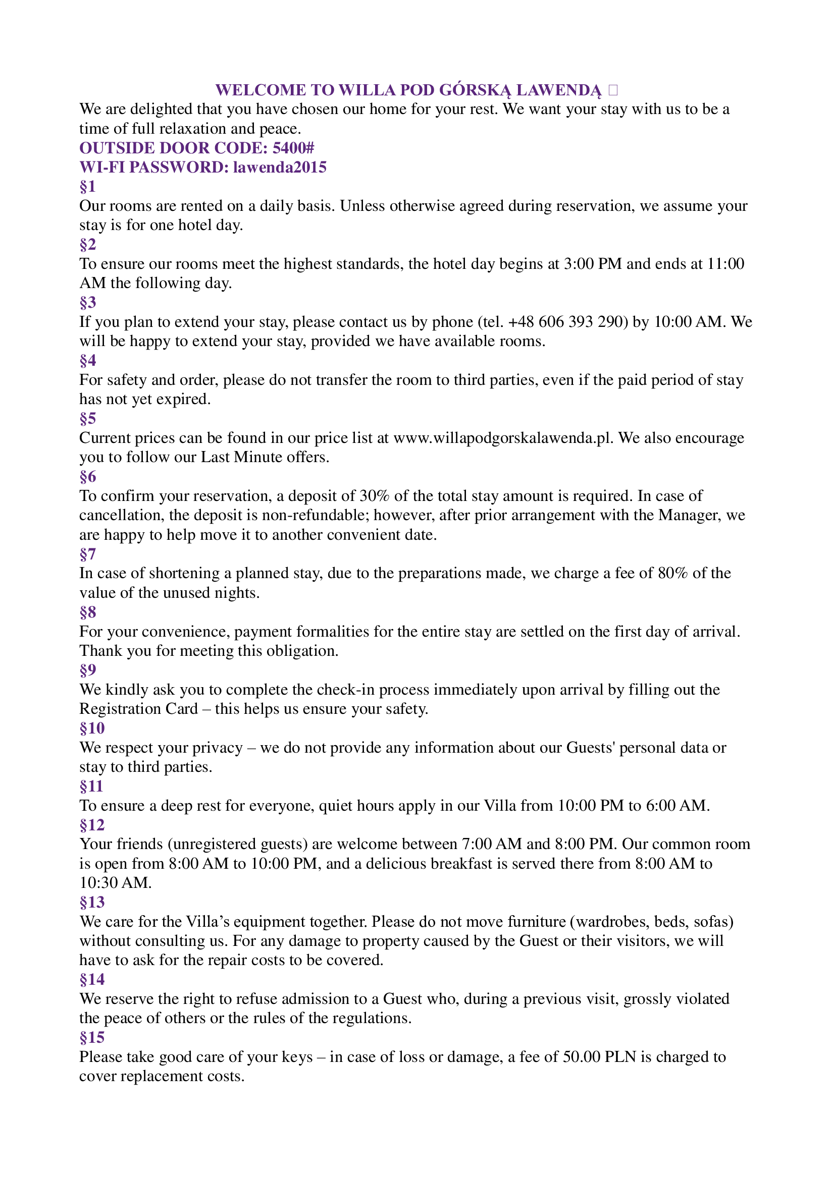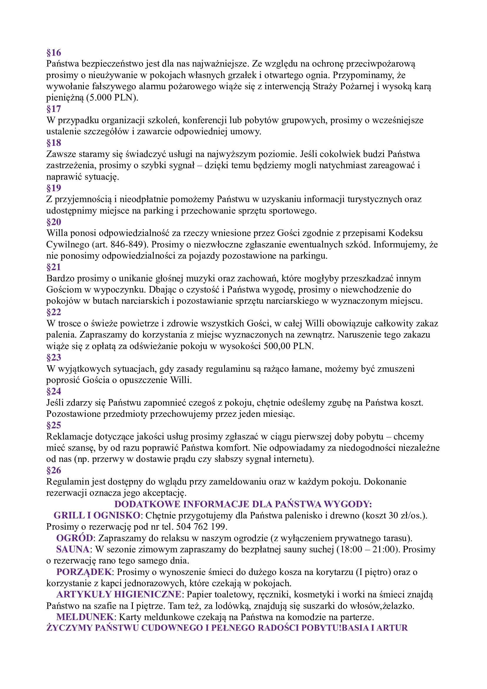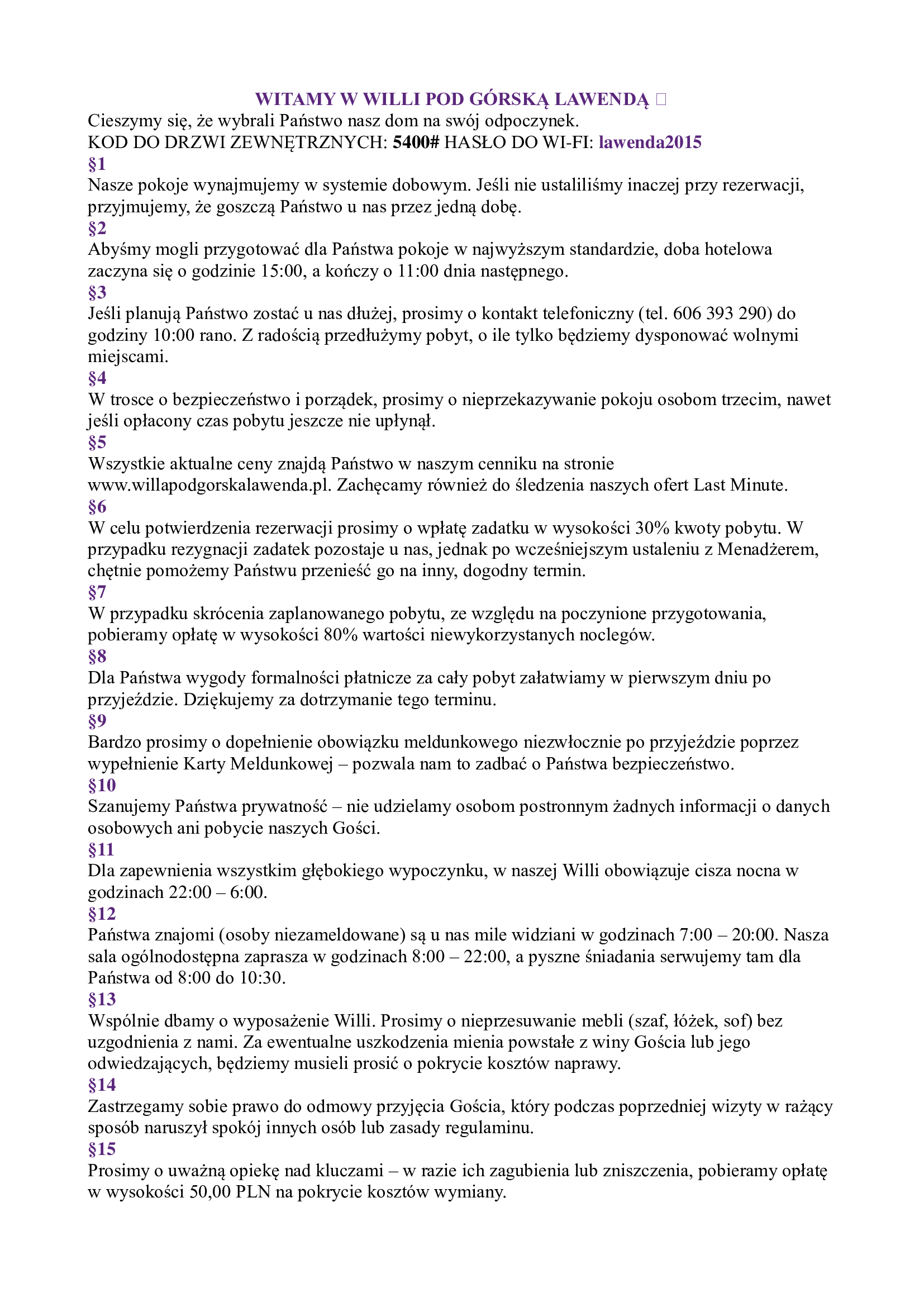Dokonując rezerwacji w naszym obiekcie akceptują Państwo Regulamin Willi.