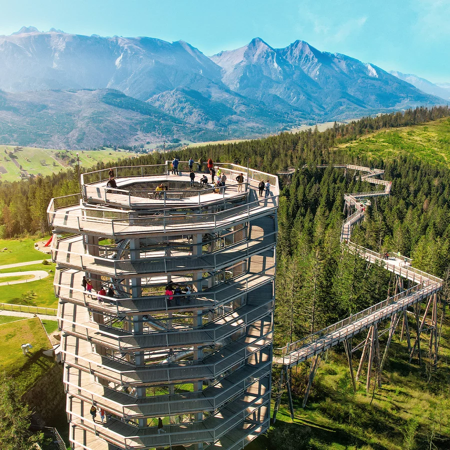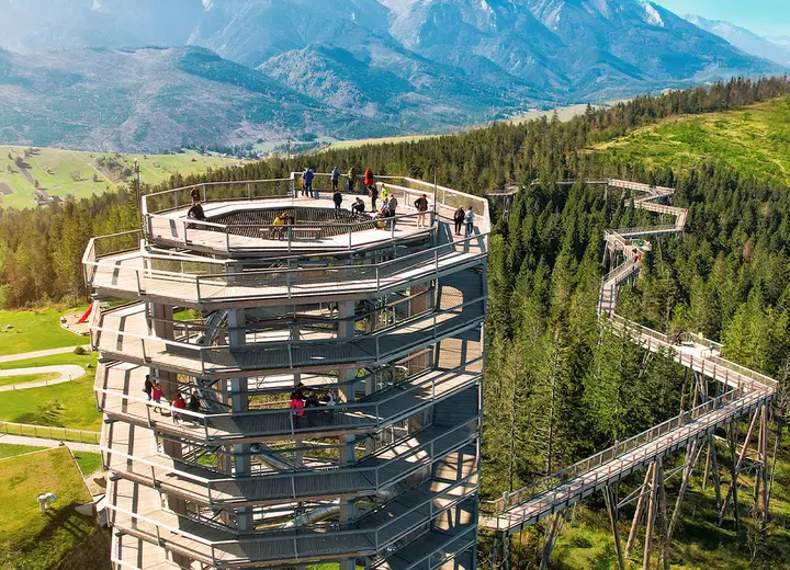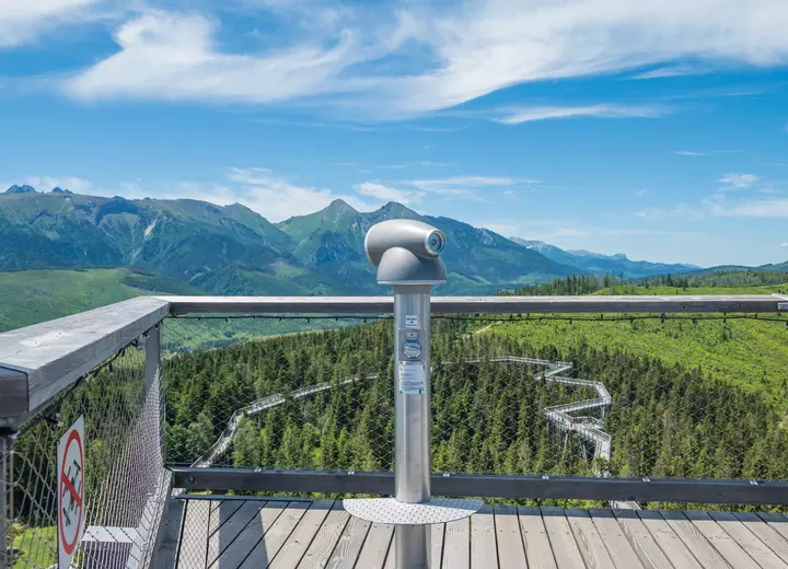 Spacer w Chmurach: Legendarna Ścieżka w Koronach Drzew jest dostępna również zimą! To niezapomniany spacer z widokiem na ośnieżone szczyty Tatr.